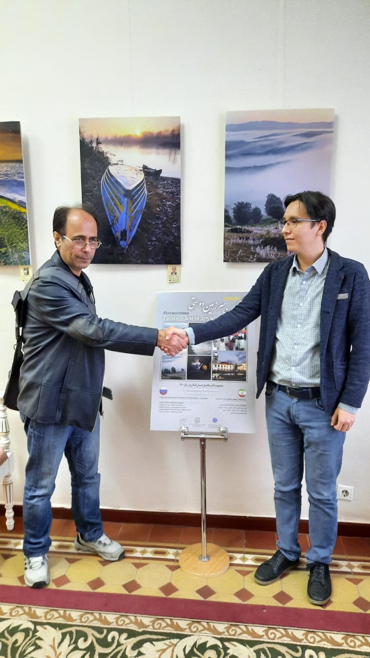 وی یاد اور شد : این نمایشگاه به همت نادر معصومی کارگردان مستند دریای مهر و با پشتیبانی پژوهشکده گیلان شناسی و حمایت های معنوی معاونت هماهنگی امور اقتصادی استانداری و اداره کل هماهنگی امور سرمایه گداری و اشتغال استانداری گیلان ، مدیر عامل شرکت کشتیرانی جمهوری اسلامی و مدیریت بندر سالیانکای استراخان ، سازمان مدیریت و برنامه ریزی گیلان، نمایندگی وزارت امور خارجه در گیلان و سرکنسولگری ایران در استراخان اتاق بازرگانی گیلان و سرای تجاری ایرانیان در استراخان شرکت تولیدی نیوساد و شرکت تولیدی بیسا پوشاک ، شرکت سارنگ تجارت ایرانیان بر گزار شد.