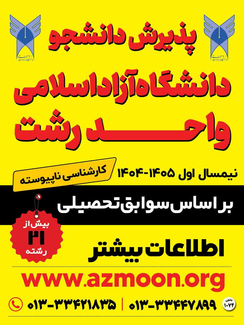 به گزارش روابط عمومی دانشگاه آزاد اسلامی، ثبت نام و انتخاب رشته پذیرش دانشجو صرفاً بر اساس سوابق تحصیلی در مقطع کارشناسی ناپیوسته مهر ماه ۱۴۰۴ دانشگاه آزاد اسلامی آغاز شد.