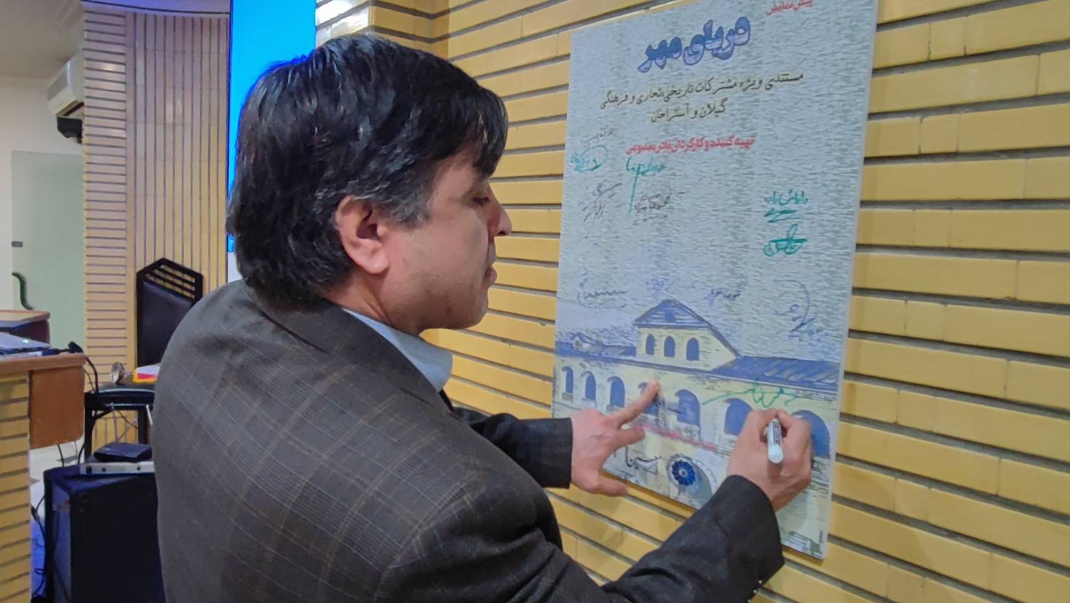 معین نیوز_مهران بازرگانی/ با اتمام مراحل فنی فیلم مستند بلند دریای مهر ویژه مشترکات تاریخی،تجاری و فرهنگی استان گیلان با استان آستراخان روسیه که پیش تر با عنوان خاکستر و دریا پروانه ساخت مستند بلند دریافت کرده بود طی مراسمی در پیش نمایش و نشست تخصصی کارشناسان اتاق بازرگانی گیلان و عوامل تولید اثر به تماشای فیلم نشستند و پس از گفتگو و تبادل نظر ساختاری و محتوایی، آیین اهدای سپاس‌نامه و تندیس یادمان فیلم به کارگردان و عوامل اجرایی از آنان تقدیر شد .